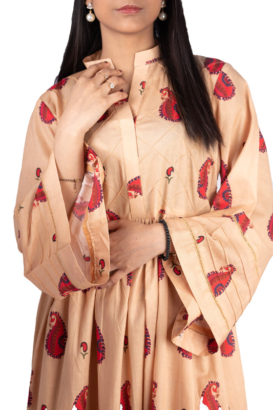 Ladies Lawn 2Pcs Frock with Bell Sleeves