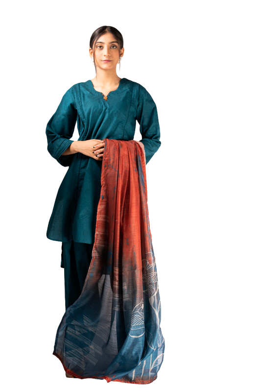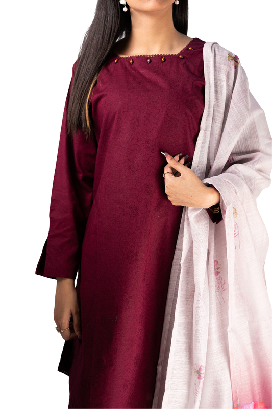 3 Piece Plain Lawn Stitched Suit With Printed Duppatta